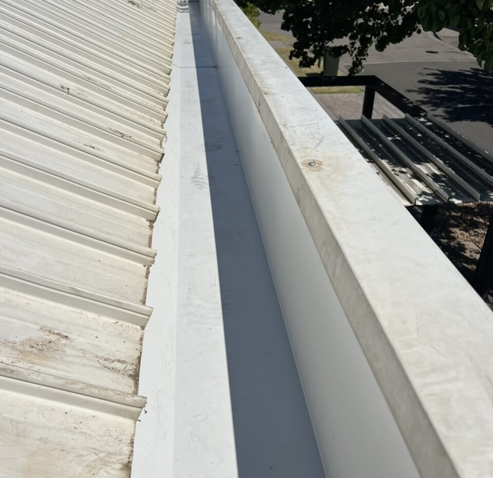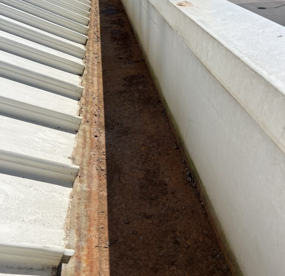 Gutter base: before photo on the left, after repair photo on the right Gutter base